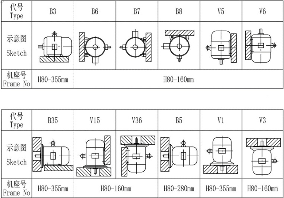 Буквы и цифры в коде в совокупности четко определяют ориентацию монтажа двигателя и способ крепления. Например, в IMB3: – «IM» означает «International Mounting» (международный монтаж) и служит префиксом для кода способа монтажа; – «B» обозначает горизонтальный монтаж, при котором ось вала двигателя расположена горизонтально; а «3» дополнительно уточняет детали установки: рама включает в себя опорную плиту, закрепленную на фундаменте с помощью опорных болтов, а торцевая крышка не имеет фланца. Аналогично, в IMV1 «V» обозначает вертикальный монтаж (вал двигателя перпендикулярен земле), а «1» обозначает раму без опорной плиты, установленную с помощью фланца торцевой крышки с валом, направленным вниз.